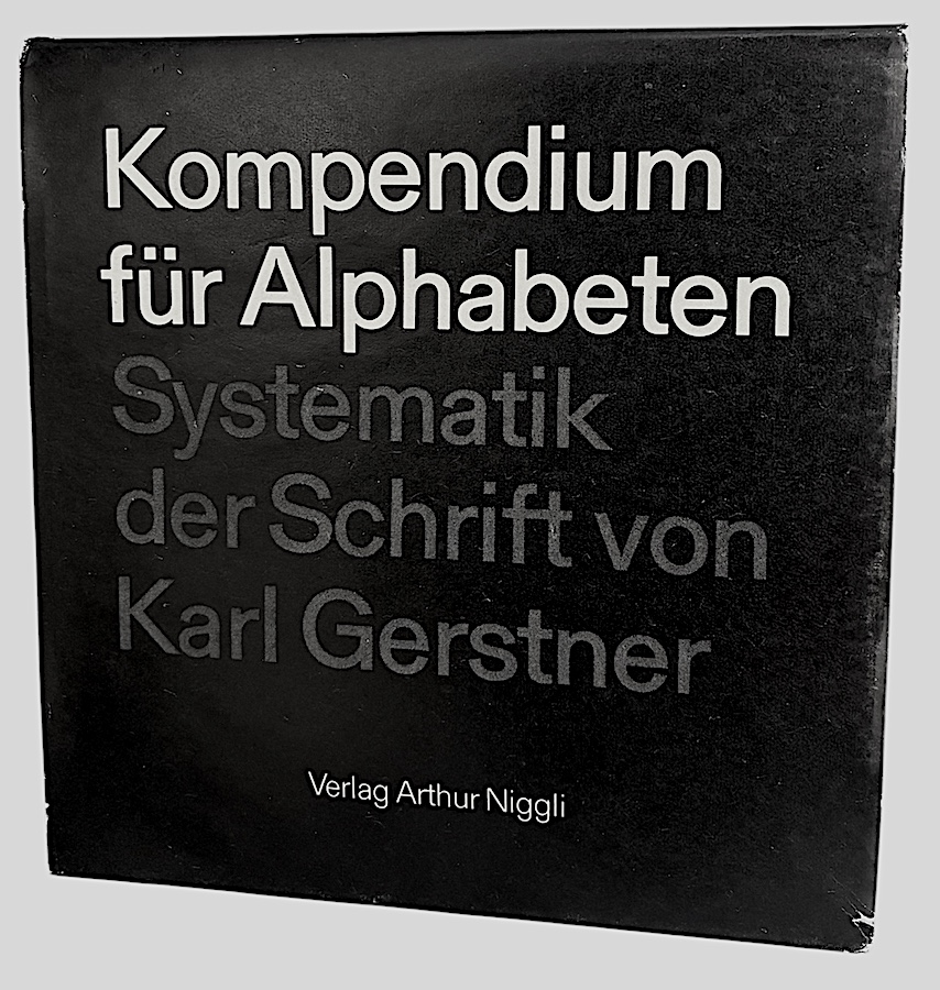 Verlag Arthur Niggli, Heiden, 1972. 180 pages, ”French folded”. Square 8vo. (15,5 x 15,5 cm). Black cloth binding, dust jacket. Type specimens. Text in German. First edition.
