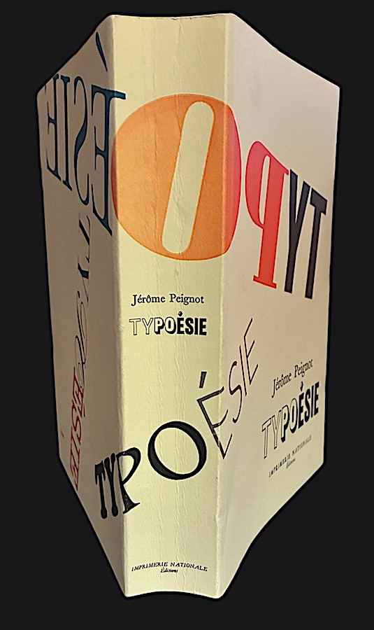 Typoetry and not typography: meaning plays with form, it is born from it and imposes it. The works of the great typographers of the 20th century are present: Maximilien Vox, Cassandre’s Bifur, Piet Zwart, the Americans Martin Solomon and Herb Lubalin, Raymond Gid, Guy Levis Mano. But, placed under the auspices of Michel Leiris, the book exposes the visual poetry of the Germans Gomringer, Mon, Rühm, of the Brazilians of Campos and Pignatari, of Emmet Williams, of Christian Dotremont, of Jacques Roubaud; and the typoems of painters, Matisse, Magritte, Duchamp, Lissitzky, Raymond Hains, Jiri Kollar, Jasper Johns and Valerio Adami.